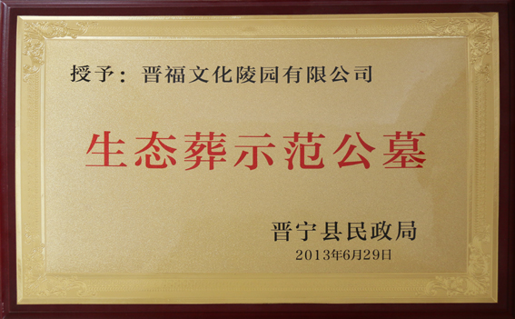 2013年6月29日,晋宁区(县)民政局授予晋福古园“生态葬示范公墓”单位